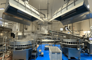 The building in the receiving site had to be adapted, roofs raised in three locations, walls removed, ceilings replaced, new lighting throughout and a general high level clean, luckily it was designed for “wet” process, so floor drains were already in. All the civil work was completed before the installation started.